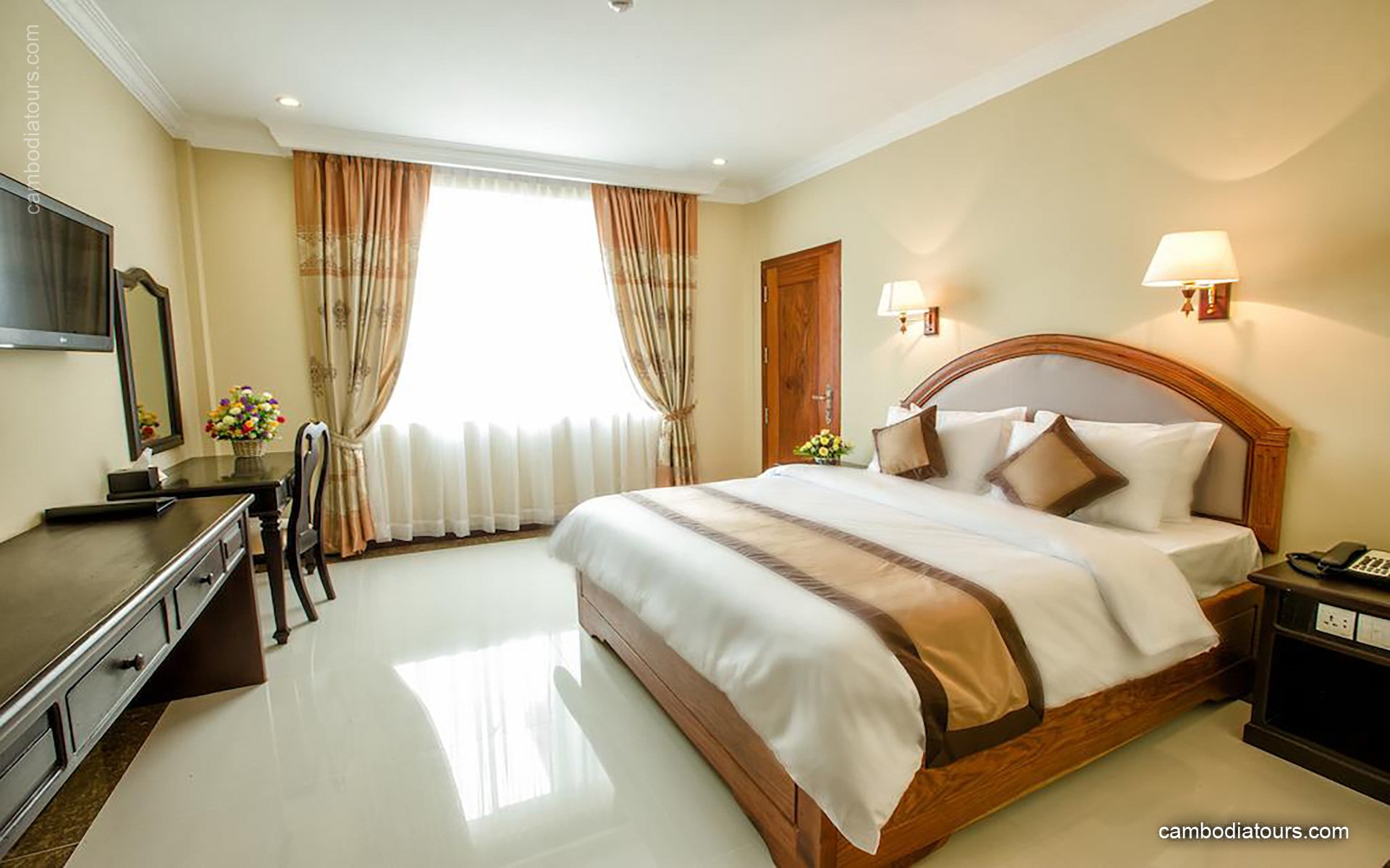 Deluxe Rooms combine comfort and elegant décor including artistically created Cambodia design. The rooms are located on the fifth to eighth floor levels and come with spacious private bathrooms, the rooms facing to pool or city view. Perfect for both business and leisure travelers, our spacious Deluxe Rooms offer true comfort and convenience.