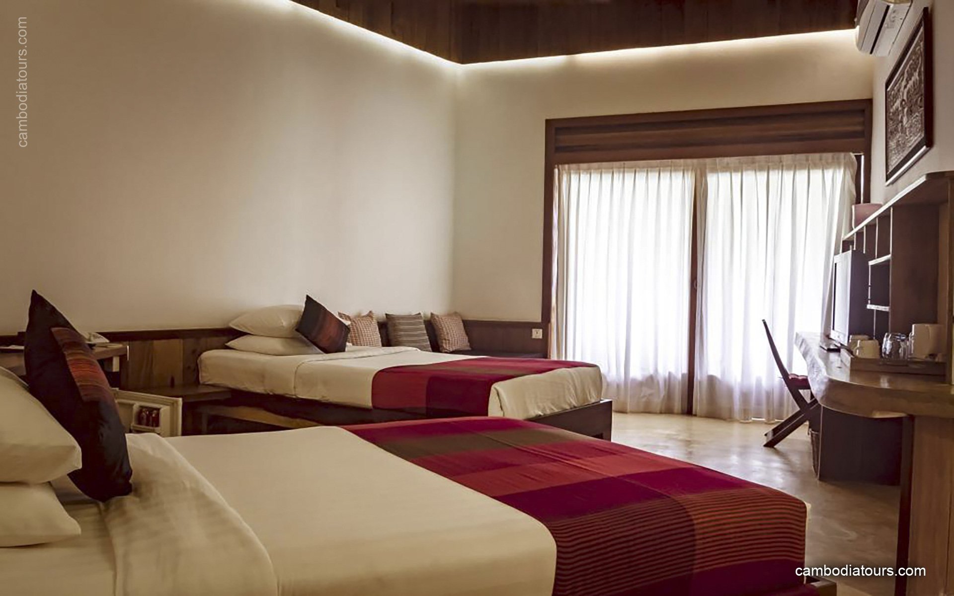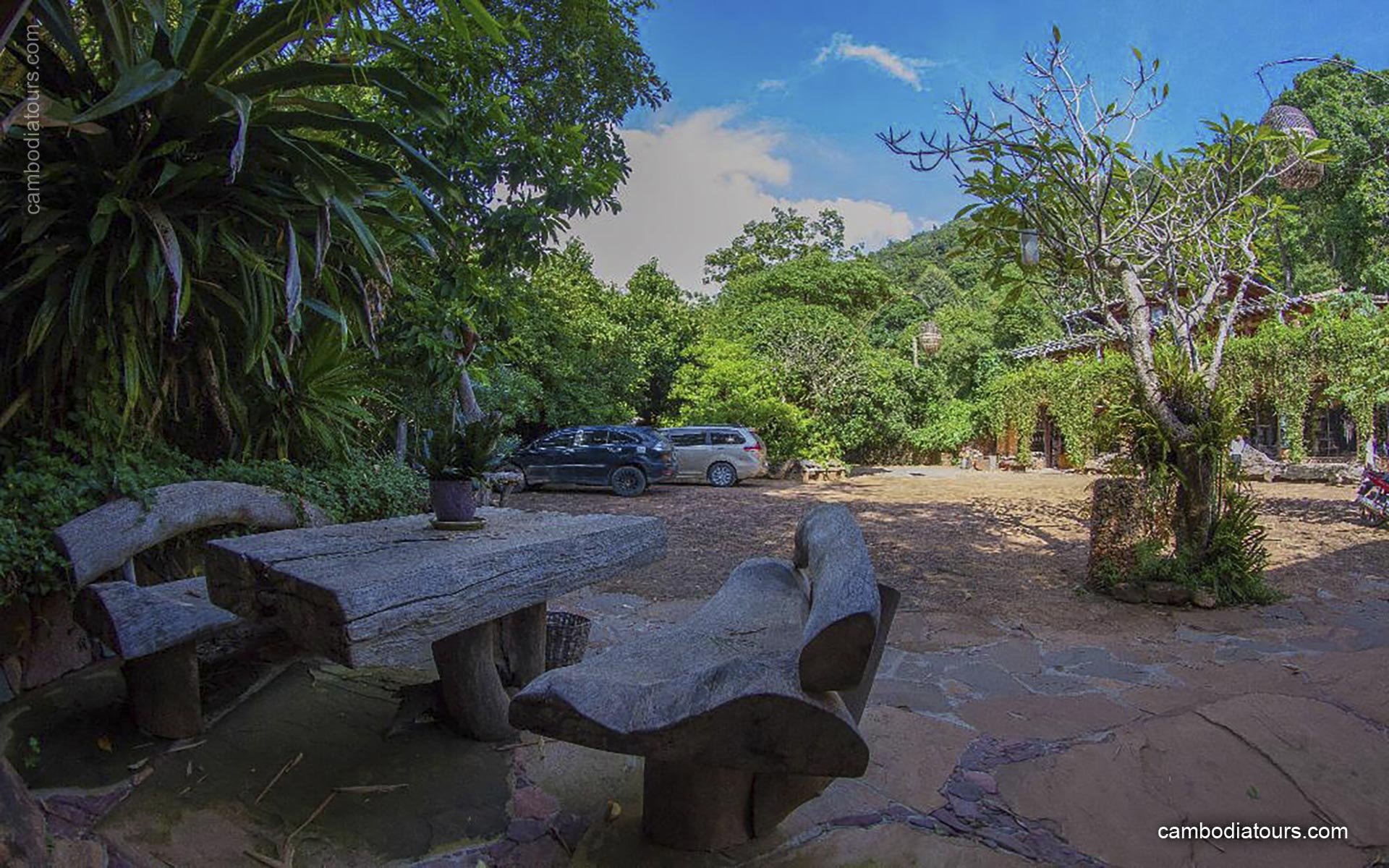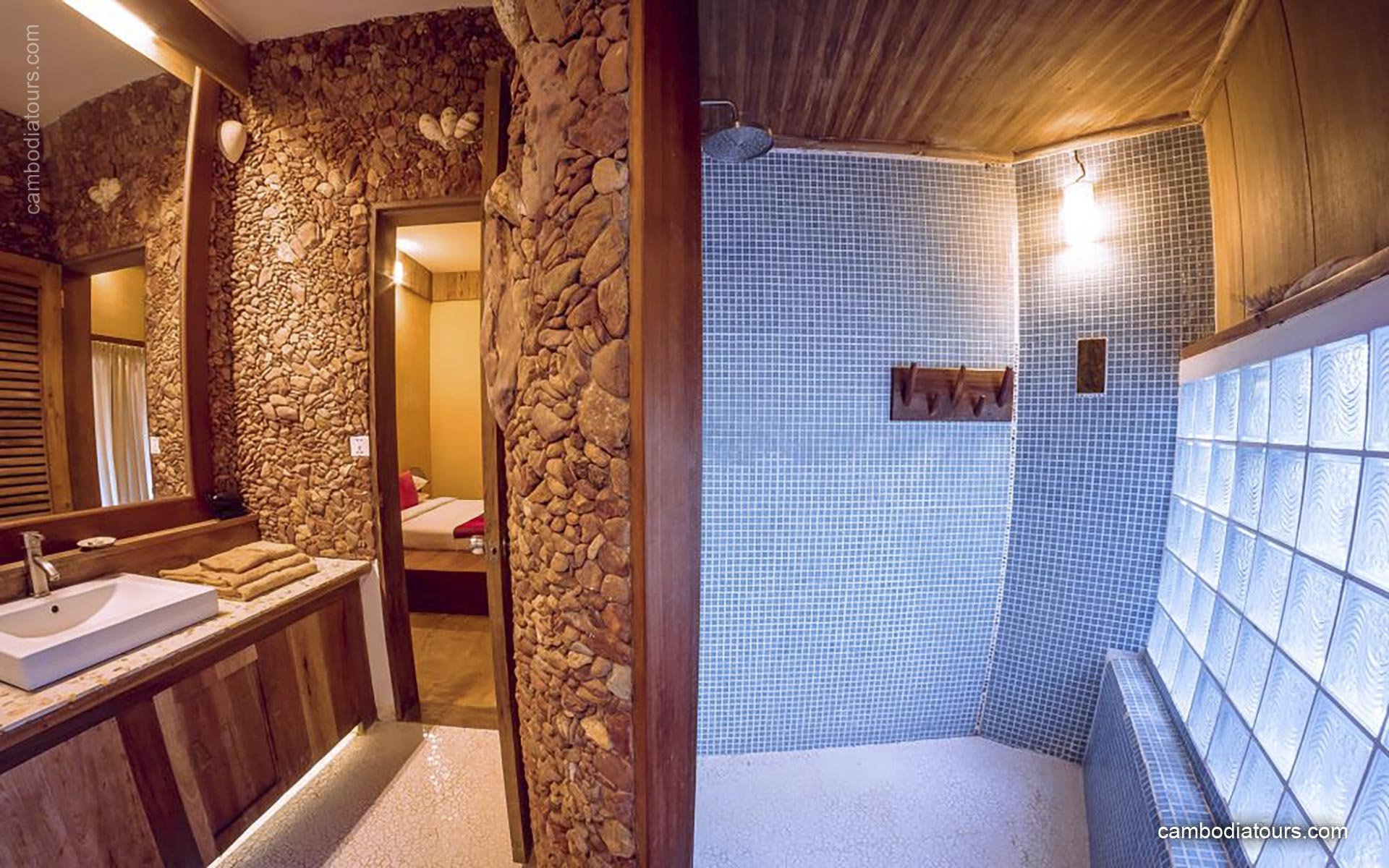 The Stone building has a total of four rooms and they are all double bedroom with the garden view. It is located near the Garden Swimming Pool in Kep, Cambodia.
