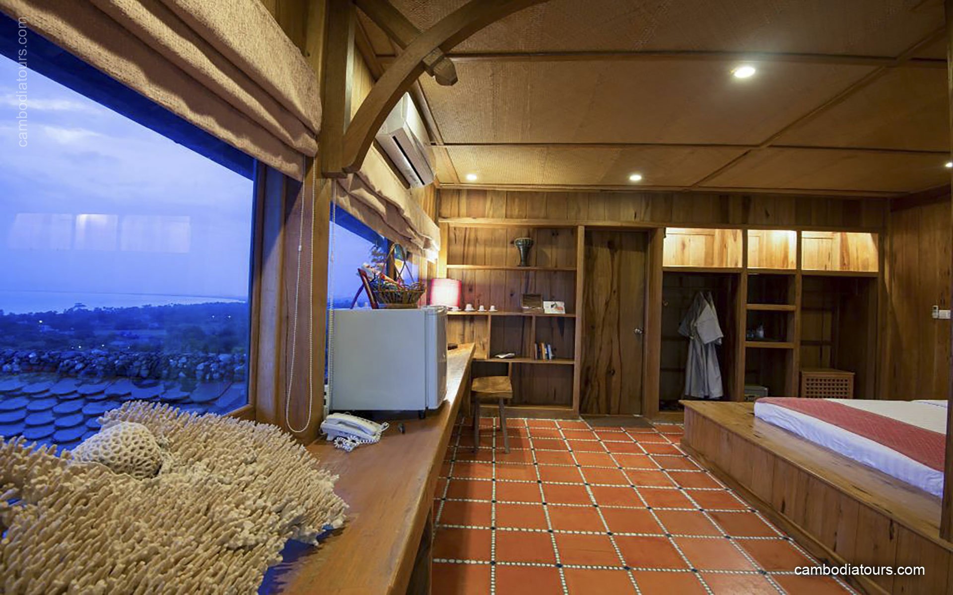 The Cliff Residence Ocean Superior is a spacious en suite double bedroom with a veranda that offers a view of the surrounding tropical forests, the ocean and the nearby islands. Its location at the upper floor of the Cliff Residence makes it the room with the best view in all the resort in Kep.