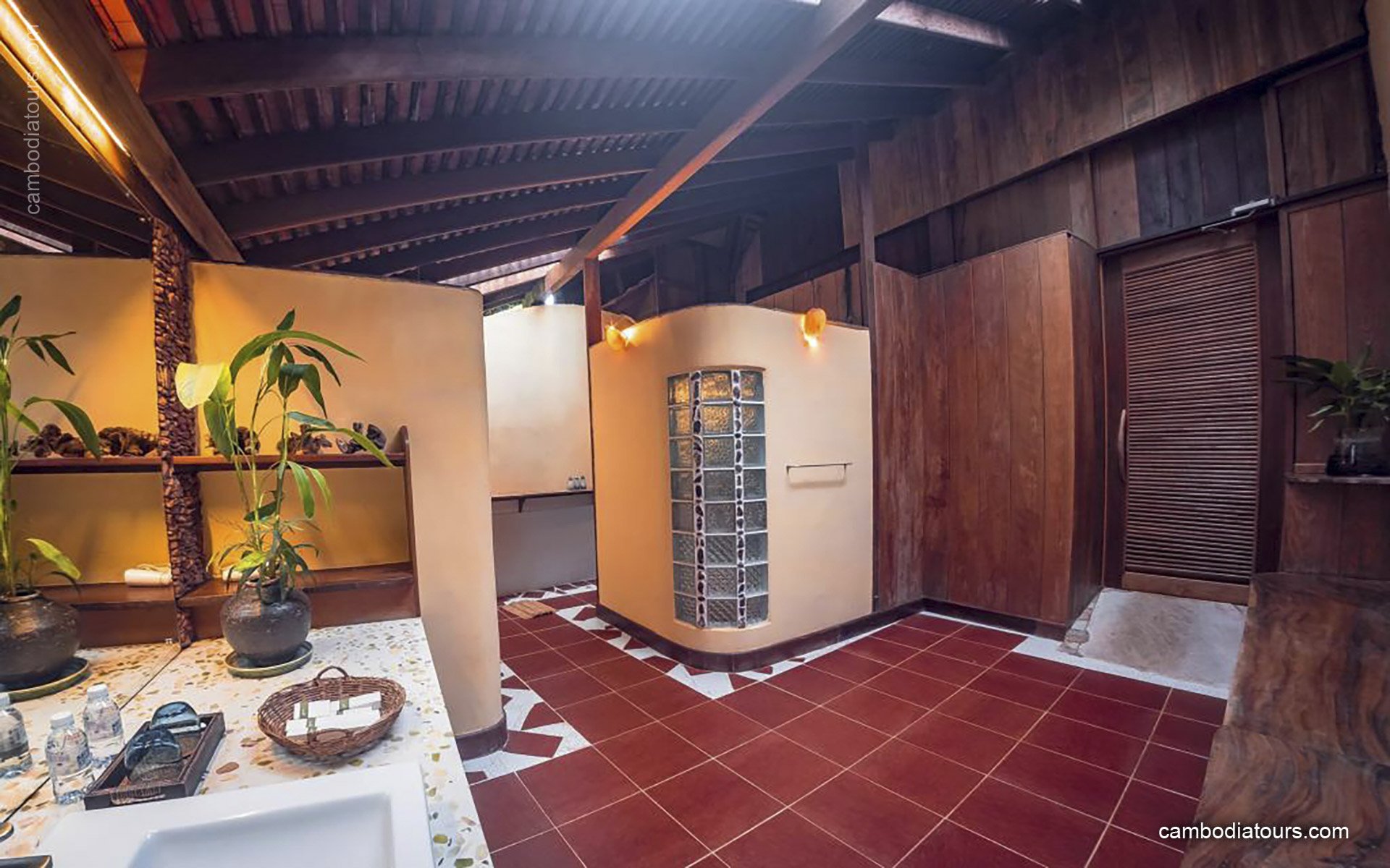 The Deluxe Family Retreat has 2 en suite double bedrooms with a spacious veranda that allows views of the surrounding tropical forests and the ocean. It is located just below the restaurant and is near the Garden Swimming pool, the Happy Hut and the Spa Reception. This Kep accommodation in Cambodia is good for family or friends.