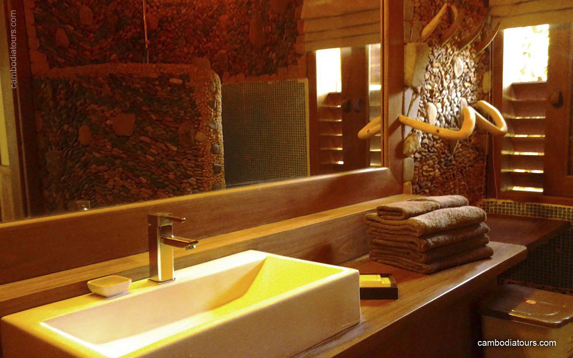 Made of wood and stones, this Suite Wooden bungalow combines elegance with a touch of rustic. The newest Kep accommodation can sleeps two and has a view of the landscapes for when having a morning or afternoon break, reading a book or simply having spending a quiet time with your partner.