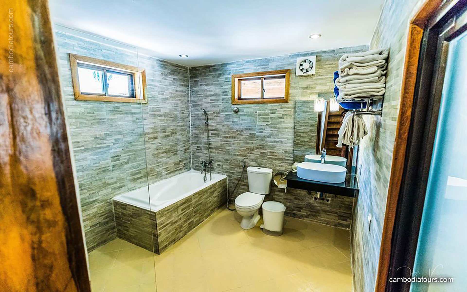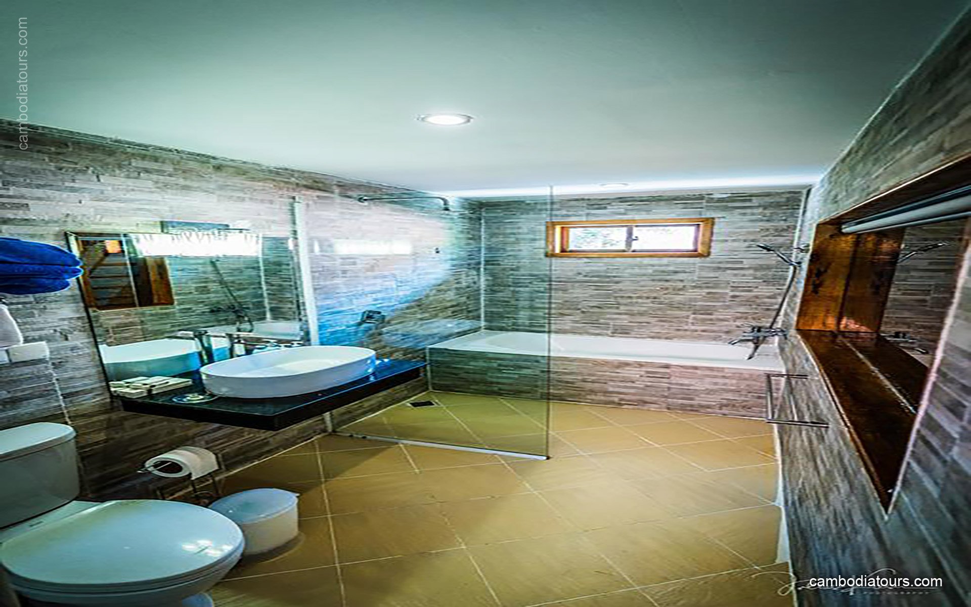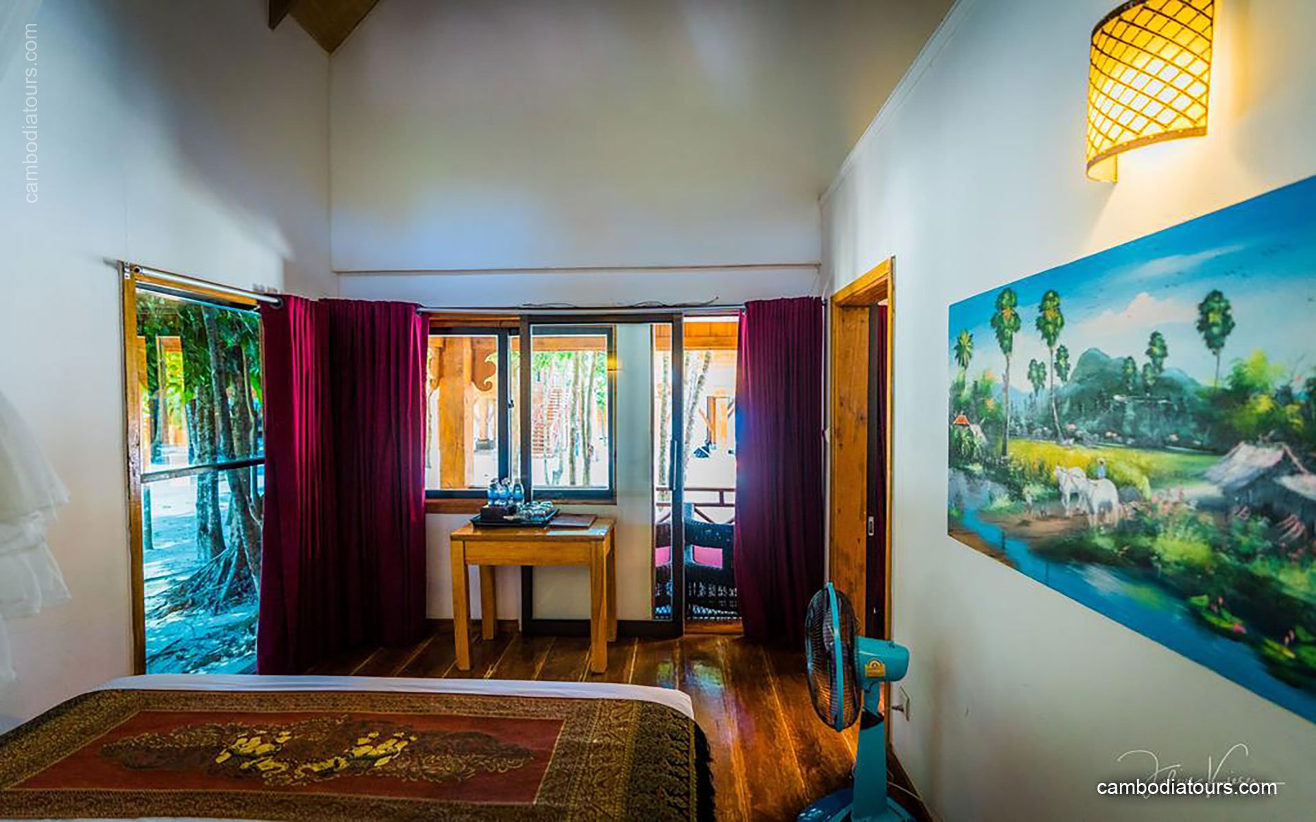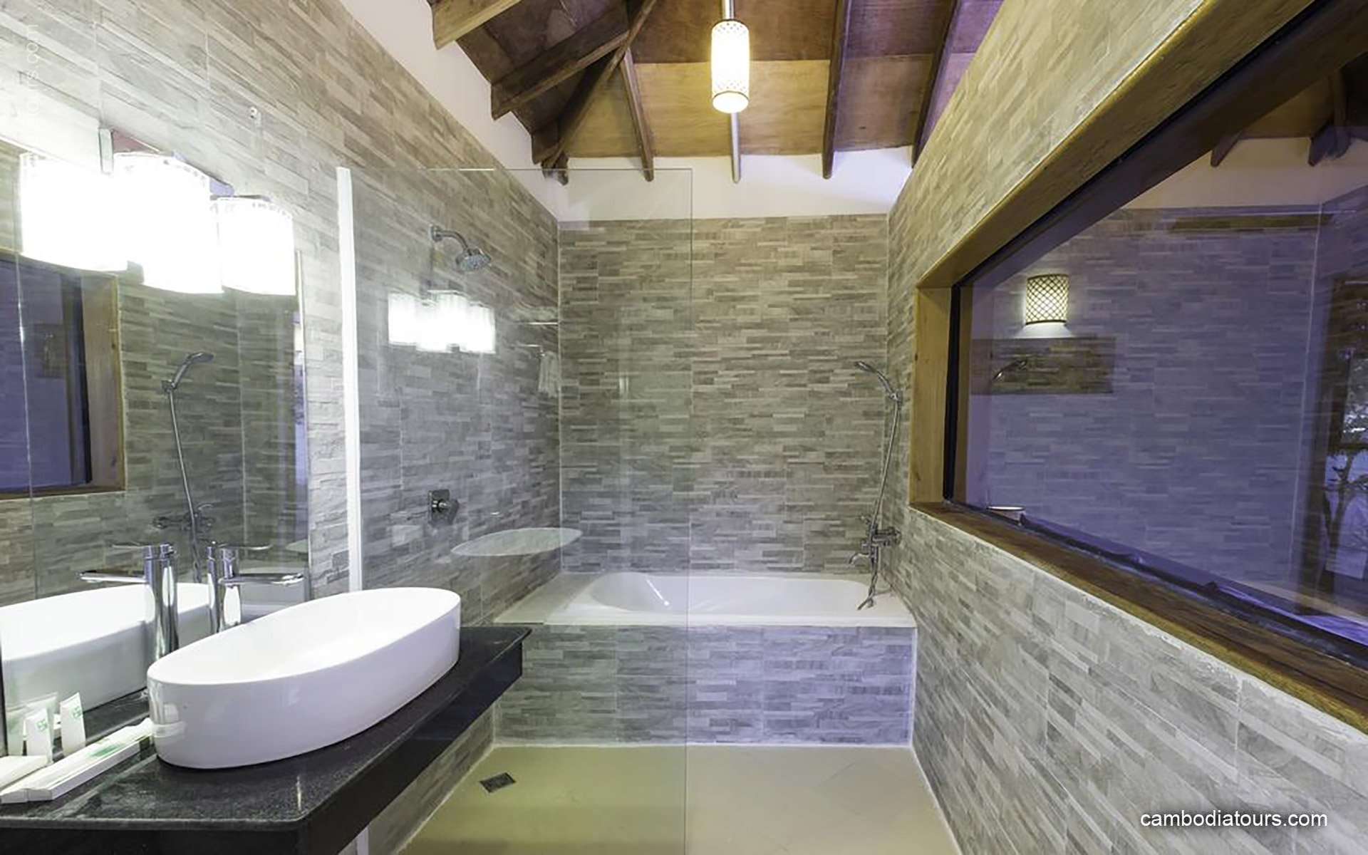 Our beautifully designed Khmer-style villas include large soft beds, modern bathrooms (with a shower, a bath, and hot water), air-conditioning, fans, mosquito nets, Wi-Fi, and many amenities to make you feel at home.