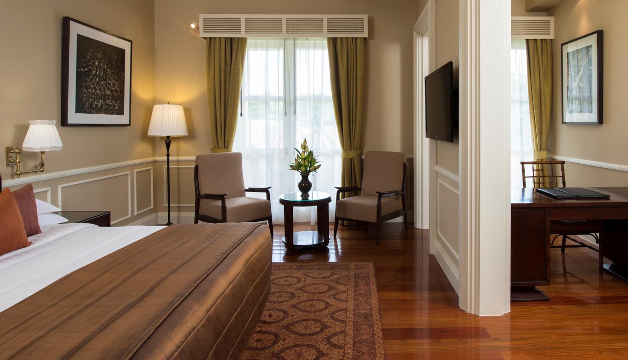 Junior suite, colonial style decor, private balcony, ceiling fan, separate shower and bath, walk-in wardrobe, separate work desk area, garden view, 516 sq.ft / 48 m²